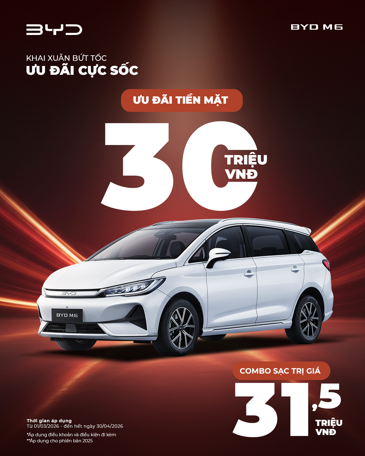 Thông qua chương trình “Khai xuân bứt tốc – Ưu đãi cực sốc”, BYD Việt Nam mong muốn tạo điều kiện để người tiêu dùng trong nước dễ dàng tiếp cận các dòng xe năng lượng mới ngay từ đầu năm. Đây sẽ là cơ hội sở hữu xe với nhiều lợi ích hấp dẫn, đồng thời mở ra hành trình trải nghiệm các giải pháp di chuyển hiện đại, tiết kiệm và thân thiện với môi trường.