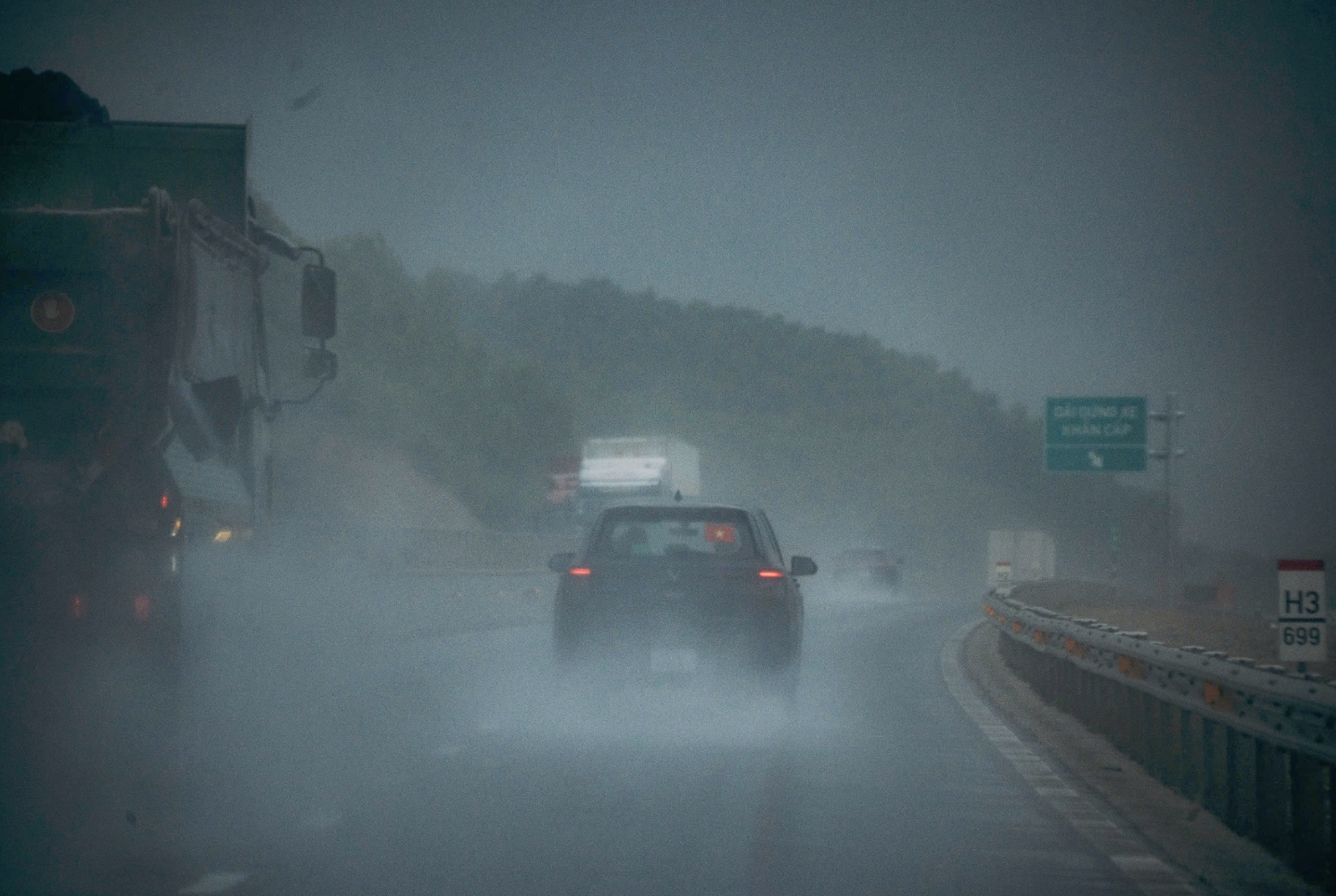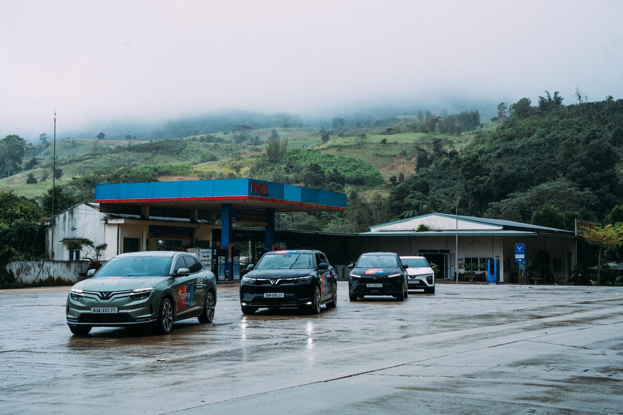 Các trạm sạc VinFast vẫn bố trí liên tục trong khoảng cách từ 10 đến 30km. Xe điện với gia tốc mạnh quá phù hợp với các cung đèo dốc. Đoàn xe lần lượt vượt qua Phước Sơn, Quảng Ngãi, Đà Nẵng, đèo Hải Vân để dừng nghỉ tại Huế trong cơn mưa lớn.