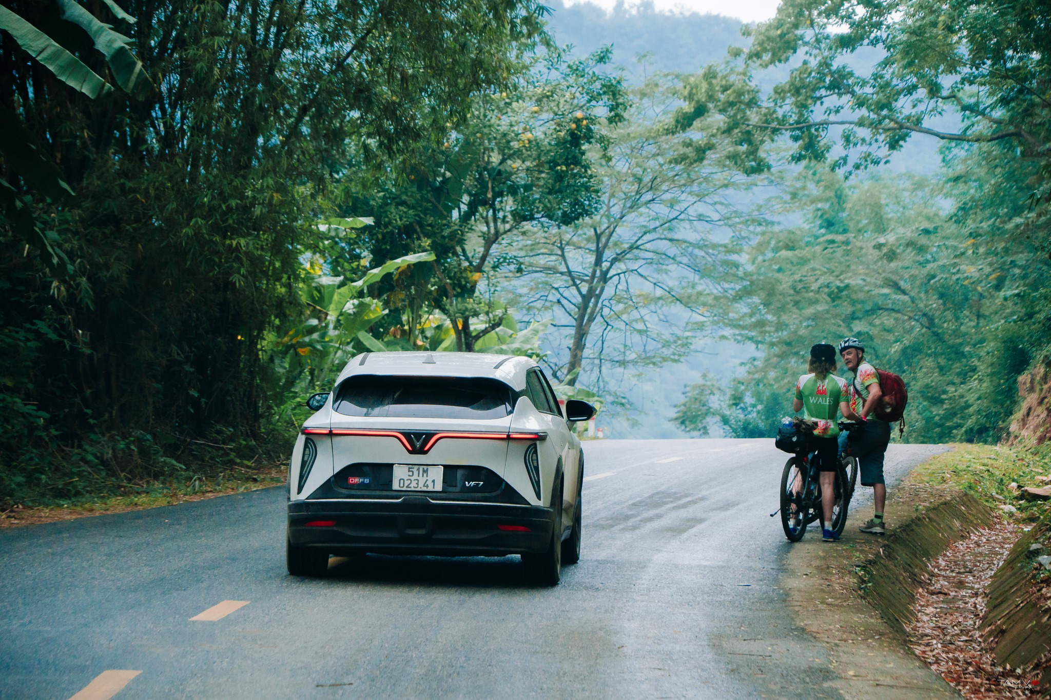 Thật khó quên lúc chiều tà tắt nắng, trong sương mờ liêu xiêu những trẻ thiếu niên trên tay cầm một vài thứ lợi phẩm mang về từ rừng già... Khi xe chúng tôi đi qua, họ chỉ ngước nhìn lặng lẽ. Thật khó quên khi xe trôi trong rừng săng lẻ, ko một âm thanh nào ngoại trừ tiếng côn trùng. Cả 4 chiếc xe trôi lững thững cũng ko phát 1 tiếng động, vì tất thảy đều là xe điện.