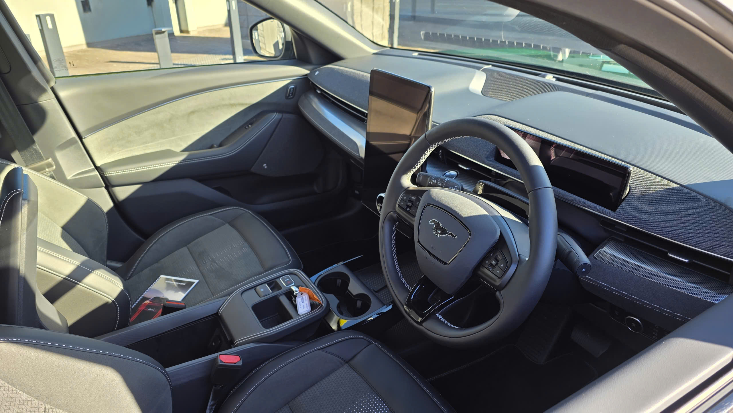 Nội thất của Mach-E là sự kết hợp hài hòa giữa thiết kế hiện đại, tinh gọn và tính năng thông minh, tiện dụng. Cần số dạng núm xoay giúp giải phóng không gian trung tâm, có thêm diện tích cho các hộc chứa đồ. Hệ thống âm thanh cao cấp B&O với các loa tích hợp khéo léo phía trước, nổi bật trên cửa gió điều hòa như một bộ loa dạng thanh.