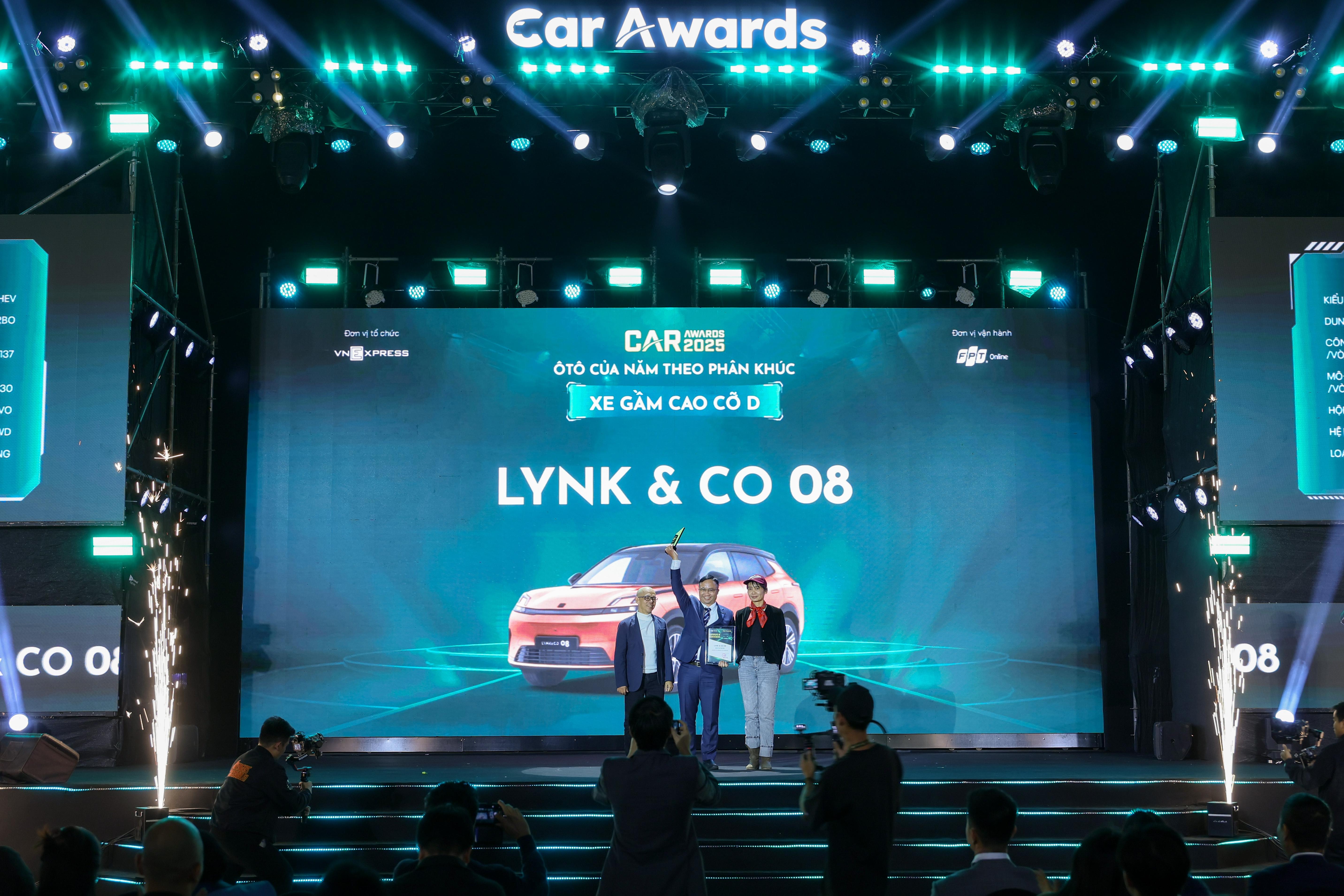 Vượt qua hàng loạt thử nghiệm lái thử gắt gao, Lynk & Co 08 EM-P đã giành được 315,6 điểm từ Hội đồng chuyên môn, xác lập vị thế cao nhất trong phân khúc Xe gầm cao cỡ D toàn thị trường Việt Nam. Ban tổ chức đánh giá đây là mẫu xe dẫn dắt cuộc chơi công nghệ trong cùng phân khúc.